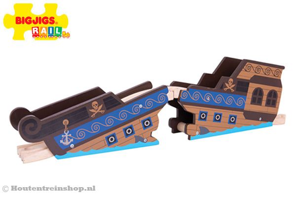 Met deze 42 delige piraten treinset van Bigjigs kun je je helemaal uitleven. De set wordt geleverd met 4 piraten, een locomotief met 2 wagonnen, boot, 2 haaien en 2 octopussen. Laat de trein over het gevaarlijke spoor rijden door de golven en langs de enge zeerovers. Geschikt voor stoere kids vanaf 3 jaar.