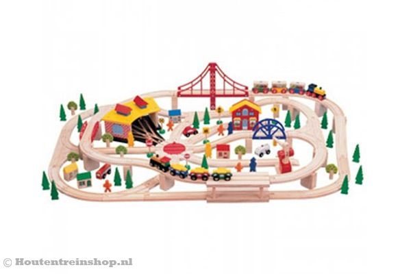 Bestel je houten trein sets gemakkelijk en snel online. Een houten trein is een aanwinst in het speelgoed van kinderen. Kinderen spelen graag met een houten treinset.